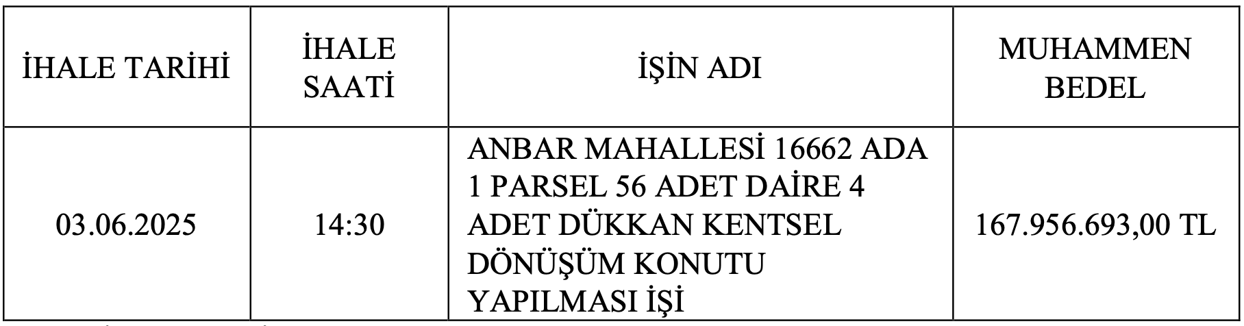 Kayseri ili, Melikgazi ilçesi, “Anbar Mahallesinde” 2886 sayılı Devlet İhale Kanunun