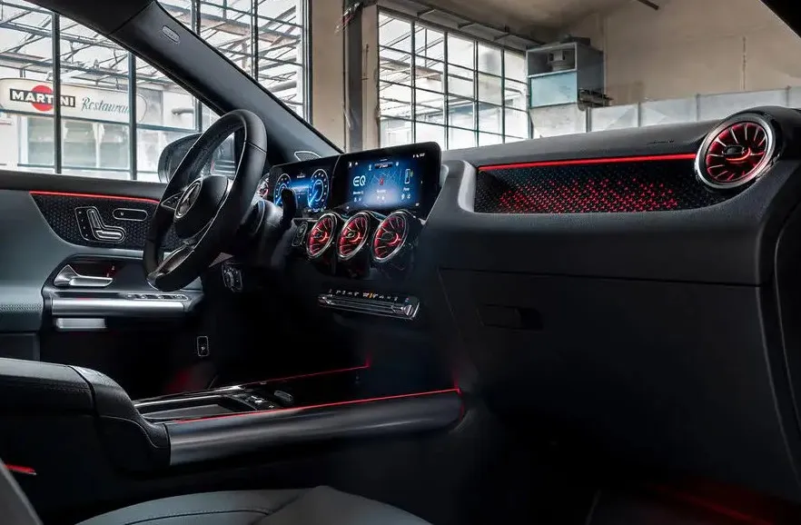 İç mekanda, EQA ve EQB modelleri Mercedes'in yeni üç kollu direksiyon tasarımını taşıyor. Bu direksiyon, dokunmatik kontrollerle entegre edilmiş durumda. Aracın içinde bulunan 10.25 inçlik ekranlar, en son MBUX yazılımını kullanıyor. Bu yazılım, kullanıcılara üç farklı ekran stili, 10 farklı renk seçeneği ve daha sade bir kullanıcı arayüzü sunuyor. Ayrıca, Apple CarPlay ve Android Auto'nun kablosuz olarak entegrasyonu da artık mümkün. Bir diğer yenilik ise, orta konsoldaki trackpad'in kaldırılması ve sesli asistanın güçlendirilmesi. EQA ve EQB modellerinde ayrıca opsiyonel olarak Dolby Atmos destekli Burmester surround ses sistemi bulunuyor. Güvenlik sistemlerinin daha az müdahaleci olması da yeni modellerin avantajları arasında yer alıyor.