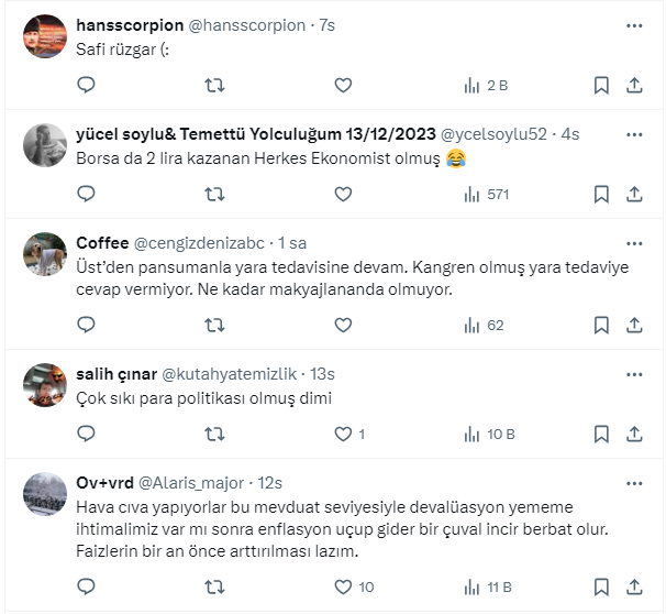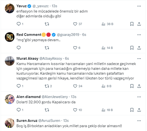 Gazeteci Barış Esen https://twitter.com/barisesen X sosyal medya hesabından yaptığı paylaşımda bu haberi duyurdu. Takipçileri atılan adımların enflasyonla mücadelede etkili olmayacağını yorumlarını yaptı.