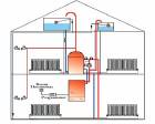 Mekezi ısıtma sistemlerinde genelde döküm radyatör kullanılıyor. Radyatör burada, ısıyı ortama konveksiyon (taşınım) yolu ile ileten bir ısı transfer aracıdır. . Genelde binalarda radyatörler duvarlara monte edilir, fakat radyatör kullanılmadan özel boruların zemin altına gömme yapılması ile zeminden ısıtma yapılan merkezi ısıtma tesisatları kullanılıyor.