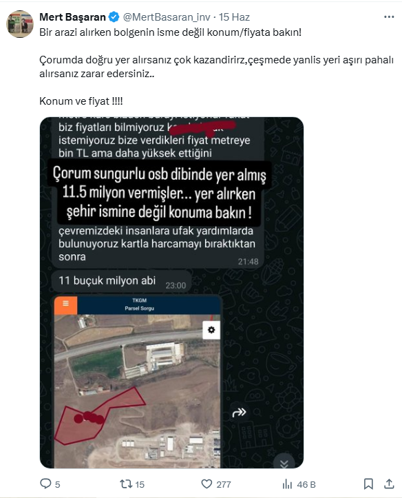 Mert Başaran arsa almak isteyenleri uyarıyor: Bölgenin ismine değil konum ve fiyatına bakın!
