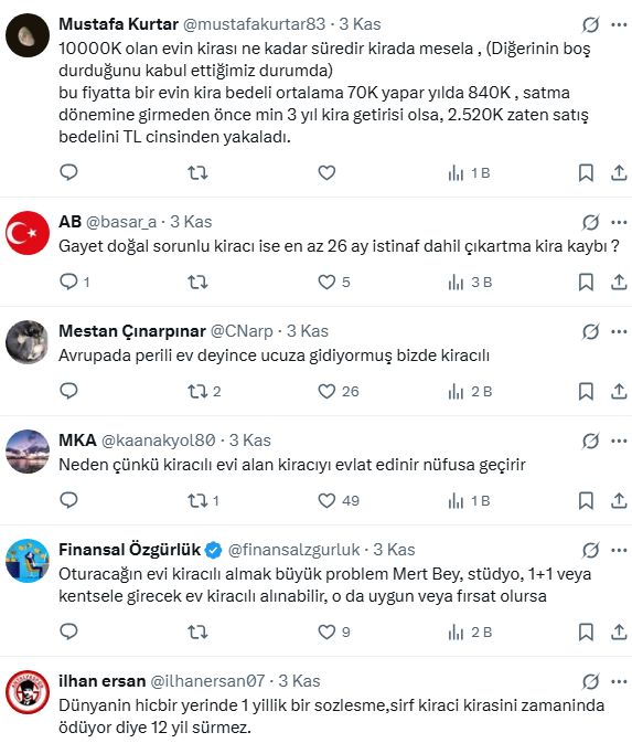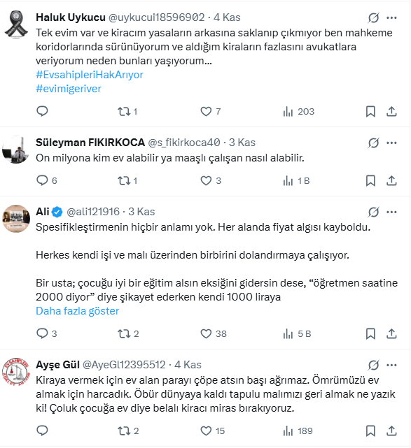 Başaran, aynı sitede aynı evlerden kiracısı olanın 10 milyon TL ,kiracısı olmayan evi ise 12 milyon TL'ye satıldığını söyledi.