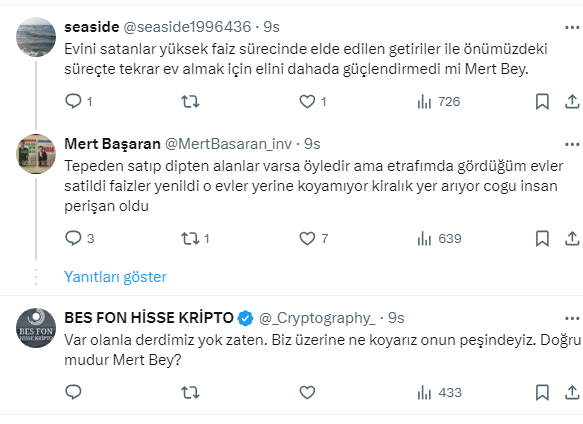 Başaran, Evin bir yatırım aracı olmadığını fakat başlarda bir evi olanların sonrasında faizler güzel diye satanların hata yapacaklarını ve asla bu hataya düşmemeleri konusunda uyarıyor.