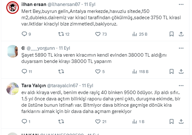 Az önce biriyle tanıştım, sancaktepede sitede evi var kiracısı 5890 lira ödüyormuş.