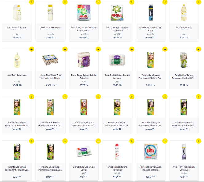 Metro online indirimlerini peş peşe açıkladı: Ayçiçek yağı 62 TL'ye, 30'lu yumurta 89 TL'ye, Ariel toz deterjan 209 TL..