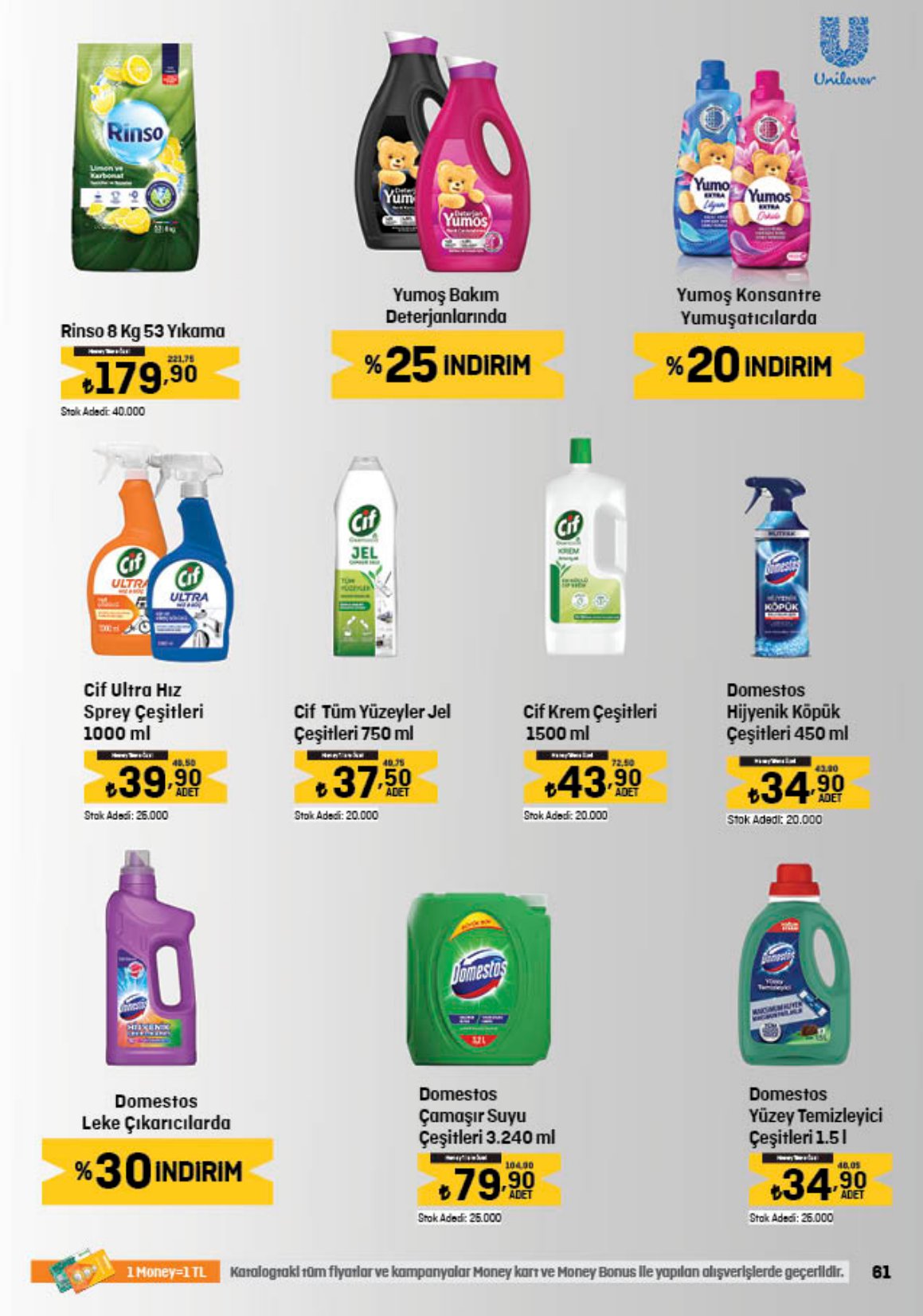 Migros'ta Domestos yüzey temizleyici 34,90 TL’ye, Solo peçete 32,90 TL’ye, Sleepy ecologic bebek bezi 159,90 TL’ye düştü