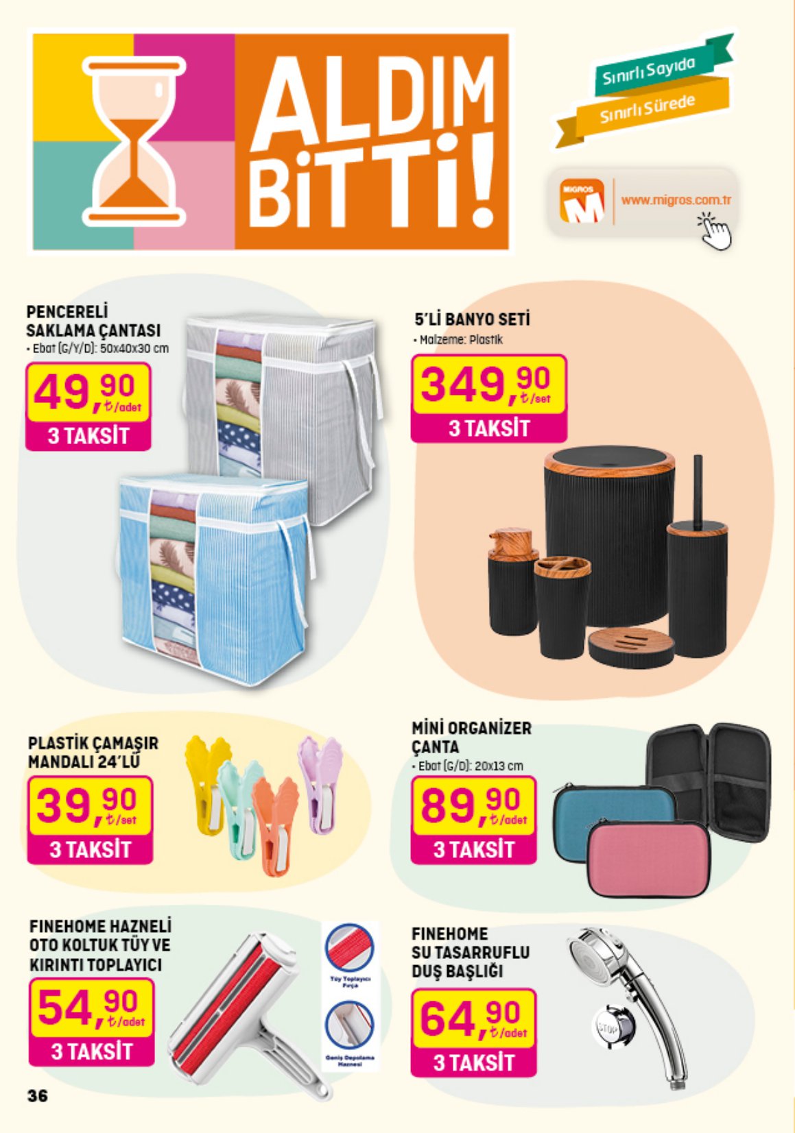 Migros'ta oto koltuk tüy toplayıcı 54,90 TL’ye, su tasarruflu duş başlığı 64,90 TL’ye, çelik termos 669,90 TL'ye düştü!