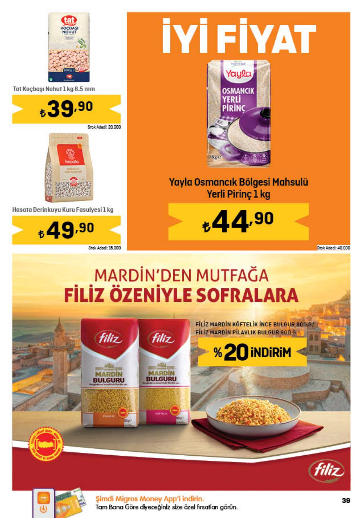 Migros'ta pazar indirimi! Pınar süzme peynir 69,90 TL’ye, koçbaşı nokut 39,90 TL’ye, yerli pirinç 44,90 TL’ye düştü!