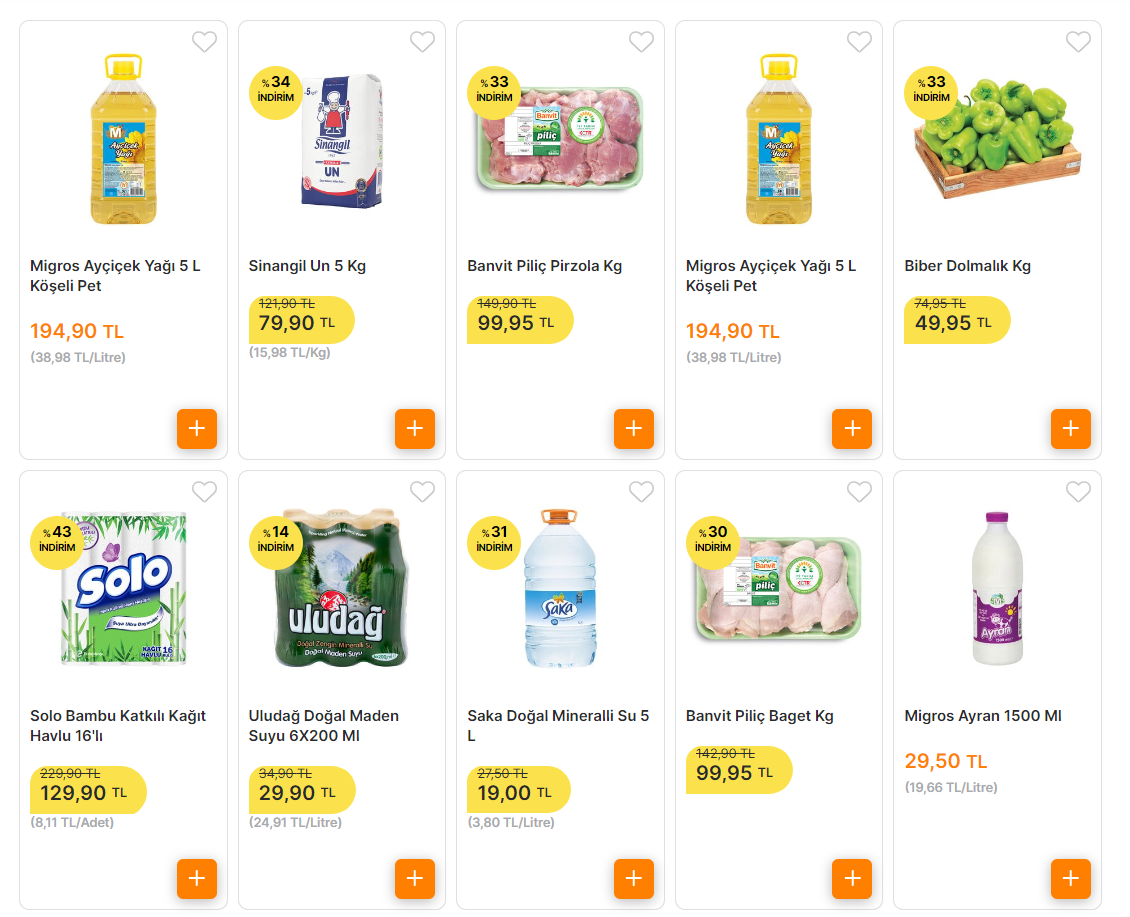 Migros Ramazan kampanyası kapsamında özellikle mutfakların olmazsa olmaz ürünlerinde dev indirim başlattı. Başlatılan kampanya kapsamında un, şeker ve salçada dev indirimler yapılırken tüm çikolatalarda bir alana bir bedava fırsatı başladı