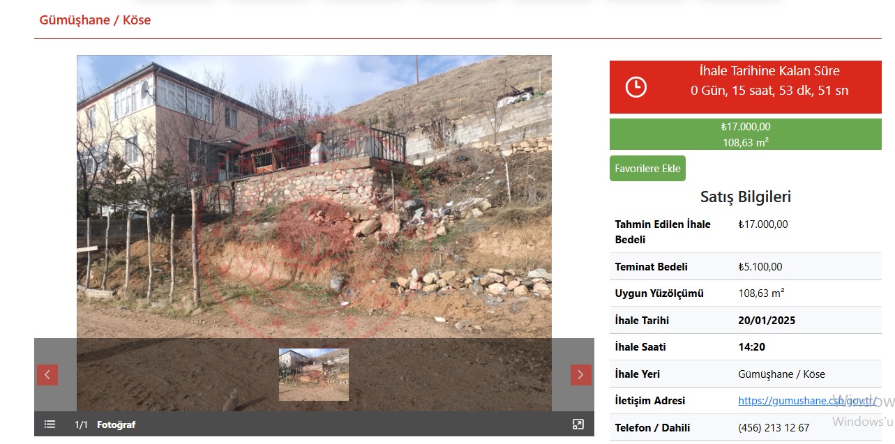 Türkiye'nin birçok kentinde arsa ve arazi satışı yapan Milli Emlak Genel Müdürlüğü Gümüşhane / Köse'de yer alan arazi için satış ihalesi düzenliyor. Arazilerin satış ihaleleri 20/01/2025 yarın gerçekleşecek.