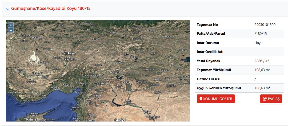 Milli Emlak Gümüşhane/Köse'de arazi satışı gerçekleştirecek...