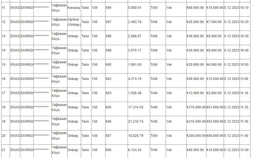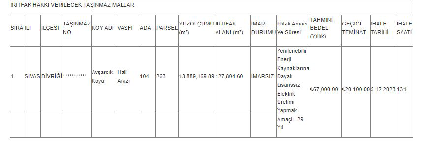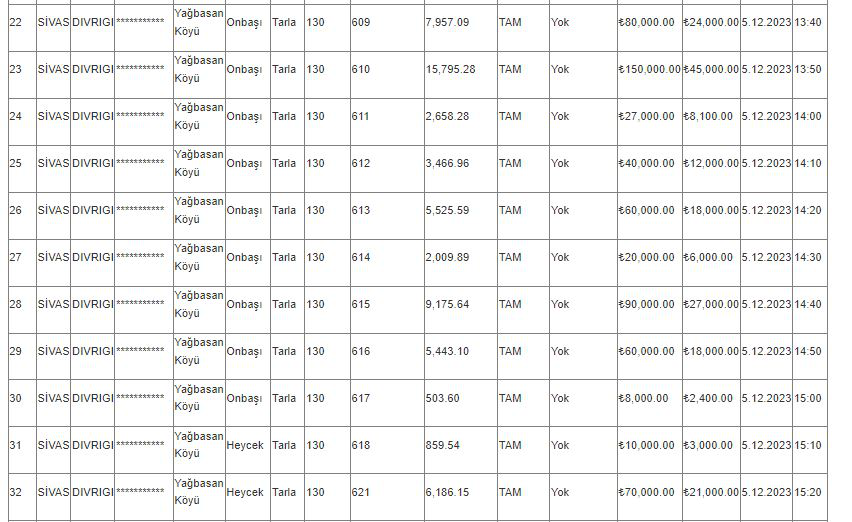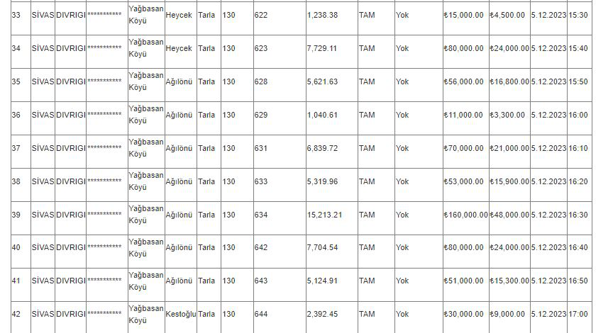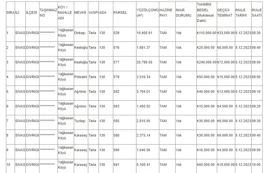Söz konusu araziler için 5 Aralık 2023 Salı günü açık teklif usulüyle ihale düzenlenecek. İhale işlemleri saat 08.30’da başlayarak 17.00’a kadar devam edecek.