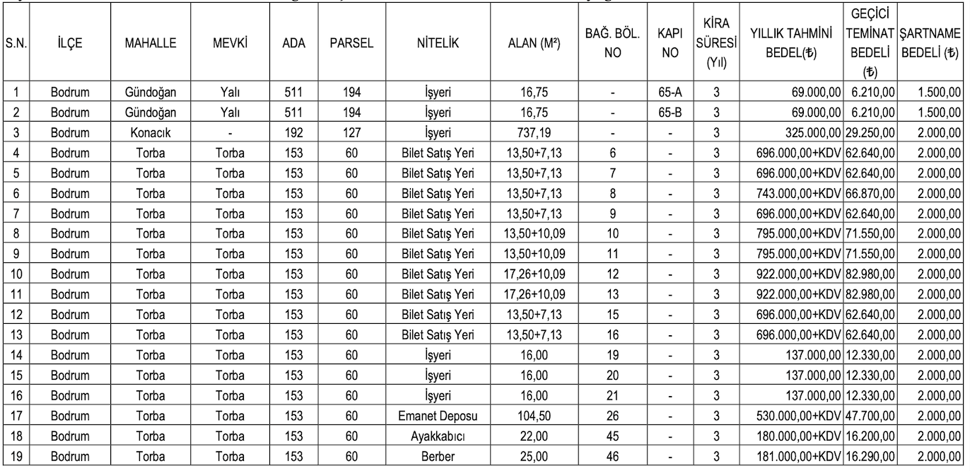 Muğla Büyükşehir Belediye Başkanlığı, Muğla’da yer alan 61 adet gayrimenkul için kiralama ihalesine çıkıyor. Merakla beklenen ihale 26 Eylül’de yapılacak.