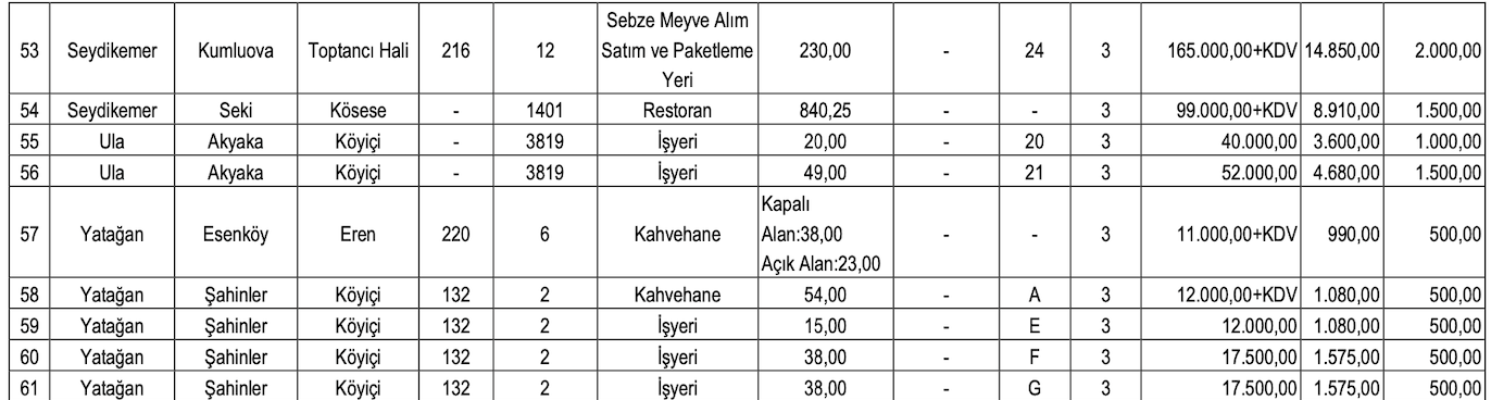 MUĞLA BÜYÜKŞEHİR'DEN KİRALIK 61 GAYRİMENKUL