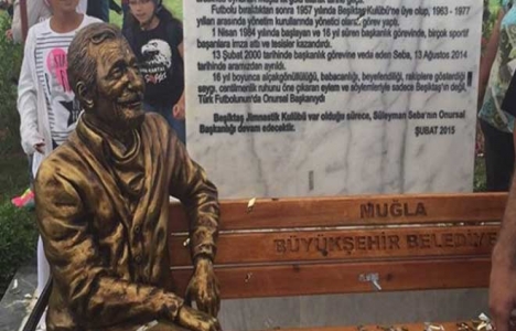 Kulüp başkanı Orman ve taraftarlar heykel önünde fotoğraf çektirdi.
