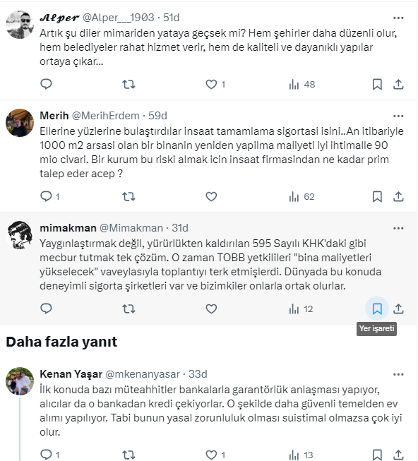 Bu 2 madde hayata geçirilirse, özellikle Müteaahhitlerin tamamlamadan bırakıp kaçtığı konutlar yüzünden oluşacak mağduriyet ortadan kalkaçaktır diye düşünüyorum.
