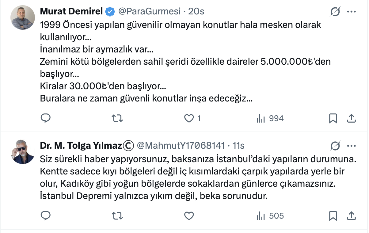 İnşaat sektörü ile ilgili detaylar pek çok kişi tarafından merak edilirken, emlak, inşaat ve konut sektörü ile ilgili yaptığı paylaşımlarla dikkat çeken 72,5 bin bin takipçili İnşaat Doktoru resmi X hesabı https://twitter.com/insaatdr üzerinden deprem ile ilgili bir paylaşım yaptı.