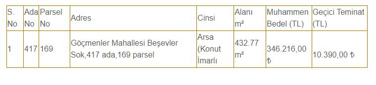 Arsanın satış muhammen bedeli ve diğer bilgiler belirlenirken, söz konusu ihalenin 31 Ekim 2023 Salı günü saat 13:30’da gerçekleştirileceği açıklandı. Dağıstan Mahallesi 417 ada, 169 parseldeki 432,77 metrekare yüzölçümlü hisseli arsanın ihalesi belediye binası toplantı salonunda ve ayrıca, encümen huzurunda gerçekleştirilecek.