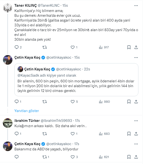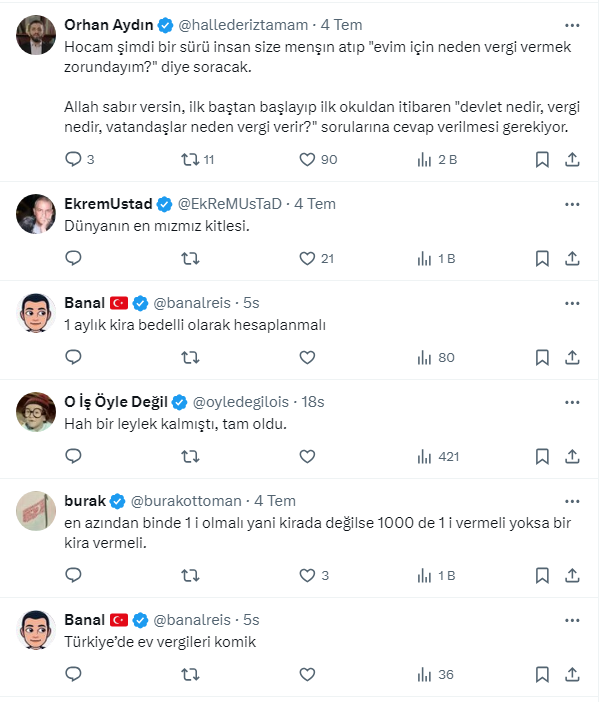 Konuyu sosyal medya hesabından paylaşan Koç, verileri konut fiyatları ile alınan emlak vergilerini hesaplayarak ''Sabah akşam ülkenizin varlığı ve dirliği için dua edin derim.'' ifadesini kullandı. İşte o paylaşım ve gelen yorumlar...