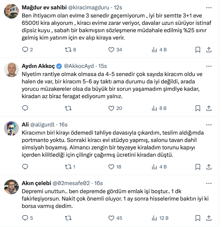 Pek çok kişi ev alıp kiraya vermenin hayalini kurarken, ‘O paraya 3-5 ev alırım kiraya veririm’ diyenlere ev sahiplerinden yanıt gecikmedi. İşte kiracı mağduru ev sahiplerinin yanıtları…