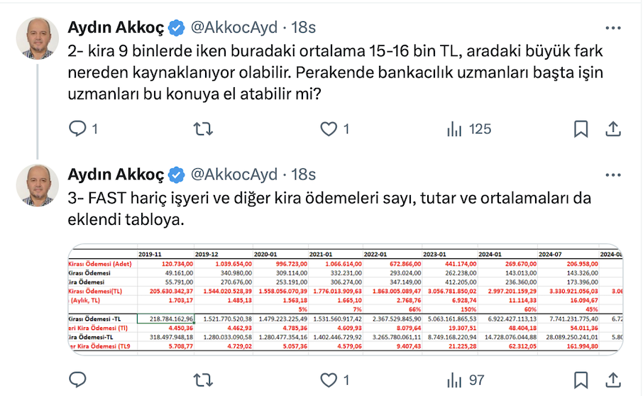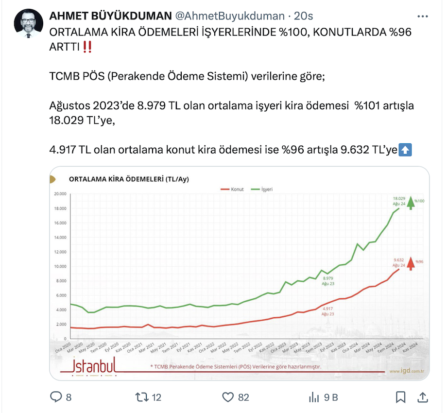 Emlak ve gayrimenkul sektörü ile ilgili olarak yaptığı paylaşımlarla dikkat çeken Gayrimenkul Değerleme Uzmanı Dr. Ahmet Büyükduman resmi X hesabı https://x.com/AhmetBuyukduman üzerinden bu kez de kiralar ile ilgili bir paylaşım yaptı.