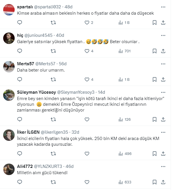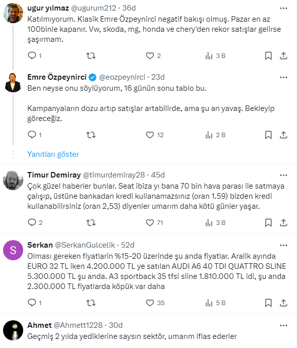 Yani pazarda fena yavaşlama var. Sektör için çok zor bir ay ama gelecek aylar çok daha zor olacak gibi…