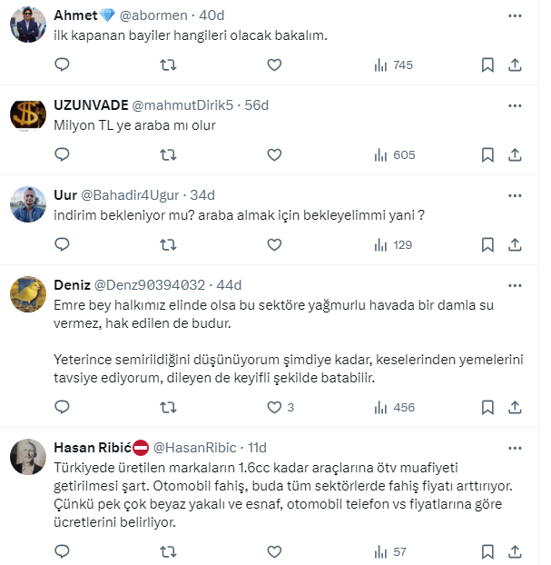 Otomobil sahibi olmak isteyenler ise, araba fiyatlarının ne olacağını merak ediyor. Konuyla ilgili ise beklenen açıklama Gazeteci Emre Özpeynirci'den geldi. Peynirci, otomobil fiyatlarındaki gelişmeleri değerlendirerek, fiyatların düşeceği net tarihi sosyal medya hesabı X'ten açıkladı. İşte o paylaşım ve gelen yorumlar...
