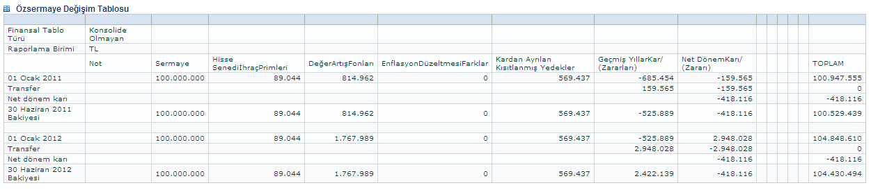 Özderici GYO, Özsermaye Değişim Tablosu için tıklayın