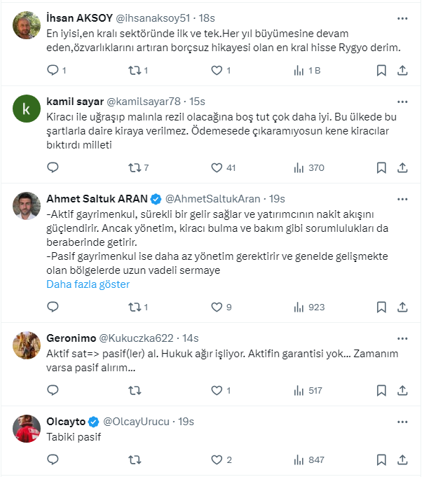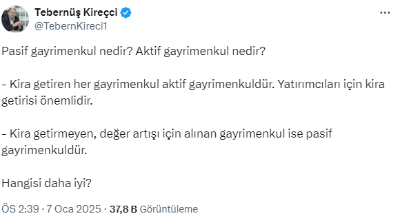 Kireçci, pasif gayrimenkul ile aktif gayrimenkul arasındaki farkı açıklayarak, hangisinin daha iyi olduğunu takipçilerine sordu.