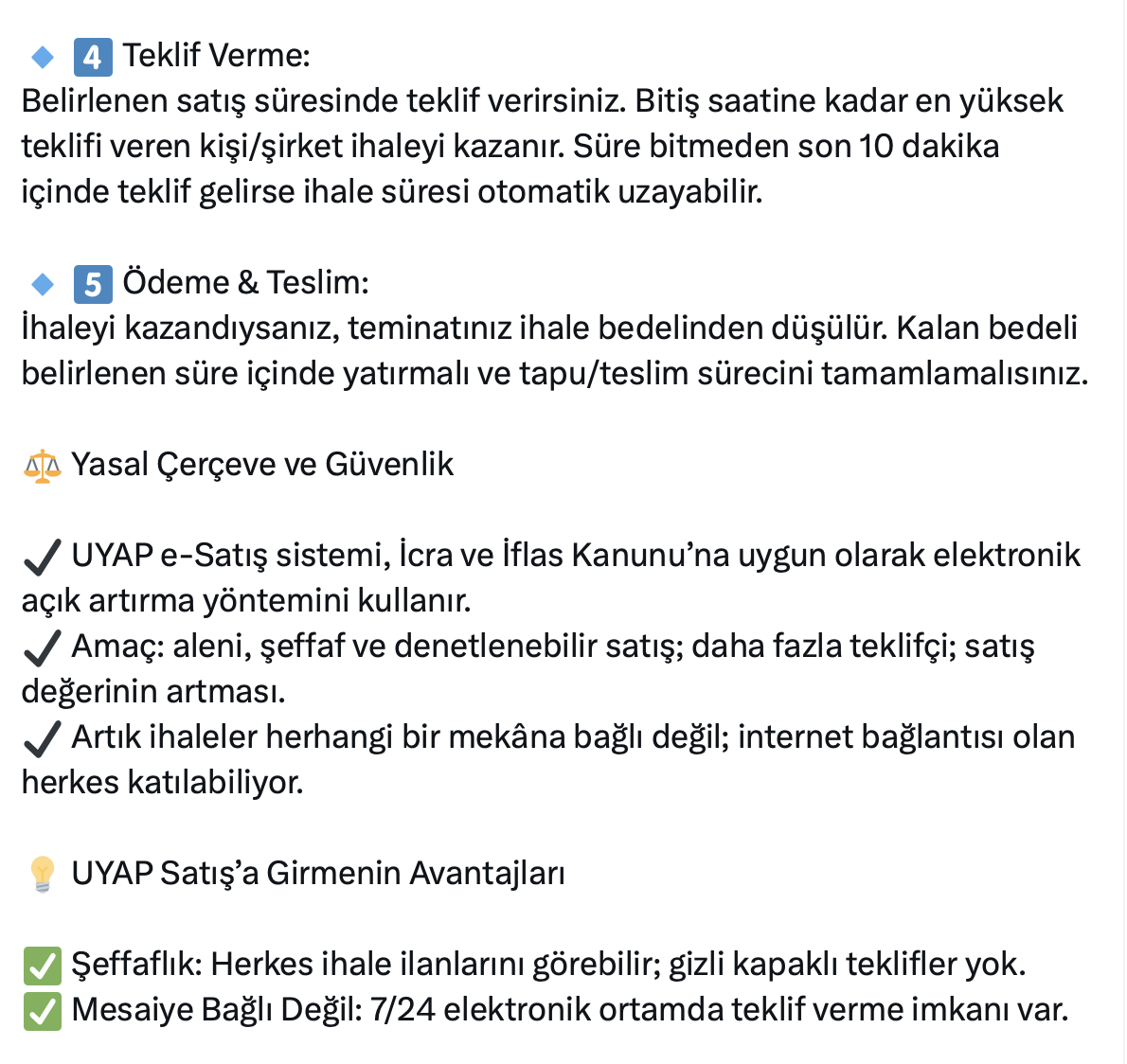 İlan Takibi: http:// esatis.uyap.gov.tr sitesinde tüm satış ilanları yayımlanır. Arama yaparak şehir, mal türü, satış tarihi gibi filtrelerle listeleri görebilirsiniz.