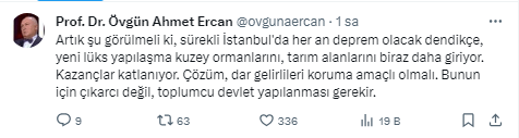 İşte Prof. Dr. Övgün Ahmet Ercan'nın paylaşımı: