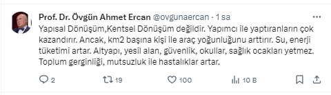 Jeofizik yüksek mühendisi Prof. Dr. Övgün Ahmet Ercan, sosyal medya hesabı X'ten kentsel dönüşüm çalışmalarına ilişkin sert eleştiri yaptı.