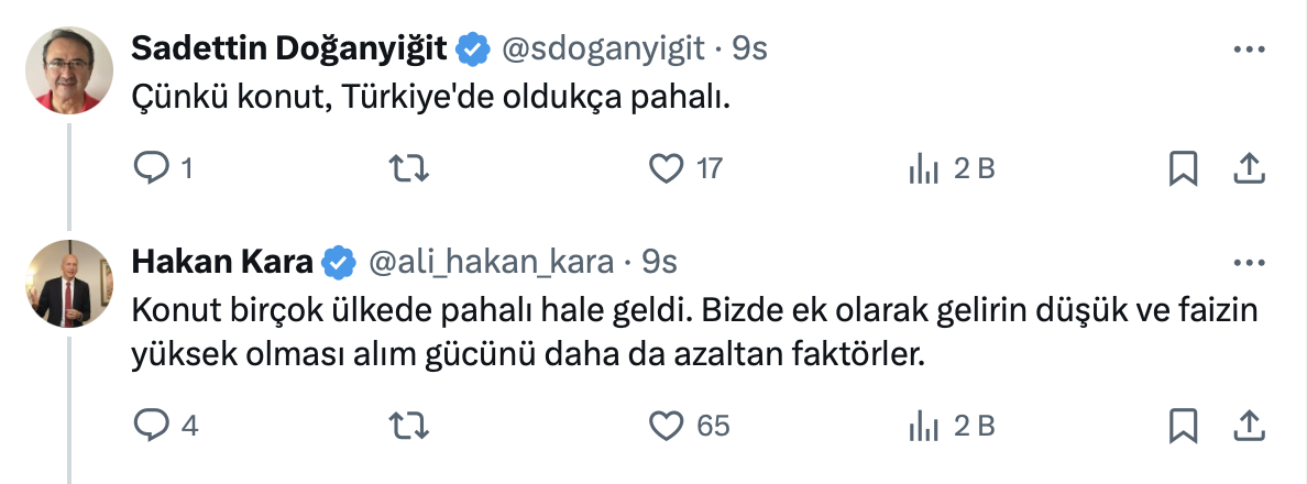 Uzmanlar konut fiyatlarını reel düşüşün yeni yılın ilk yarısına kadar devam etmesini beklerken, İktisatçı akademisyen, Bilkent Üniversitesi Öğretim Üyesi, TCMB eski başekonomisti Prof. Dr. Ali Hakan Kara’dan da konut satın alma gücü ile ilgili çok önemli bir paylaşım geldi.
