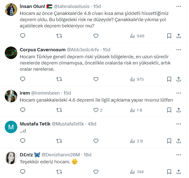 Yer Bilimci Prof. Dr. Naci Görür resmi X hesabı https://twitter.com/nacigorur üzerinden yaptığı paylaşımda Gemlik'in konumunun iyi olmadığını belirterek, Gemlik Fayı üzerinde. Bu fay İznik ve Geyve Fayının devamı olduğunu belirtti.