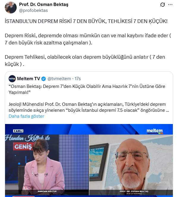 İşte Jeoloji Mühendisi Prof. Dr. Osman Bektaş'ın sosyal medyadaki o paylaşımı...