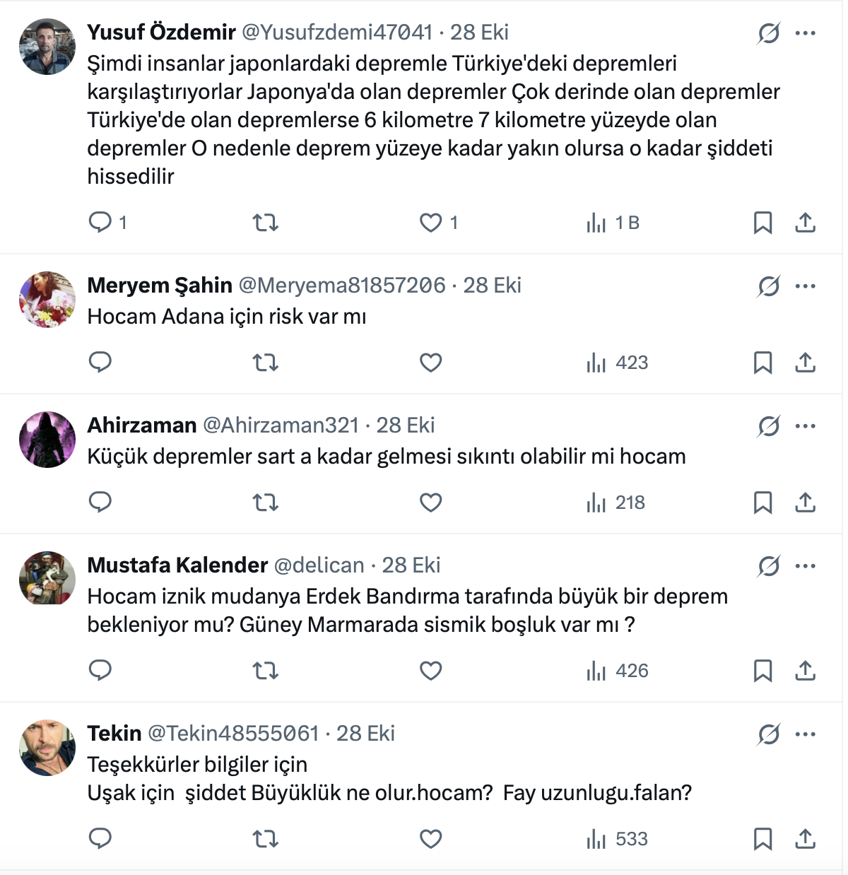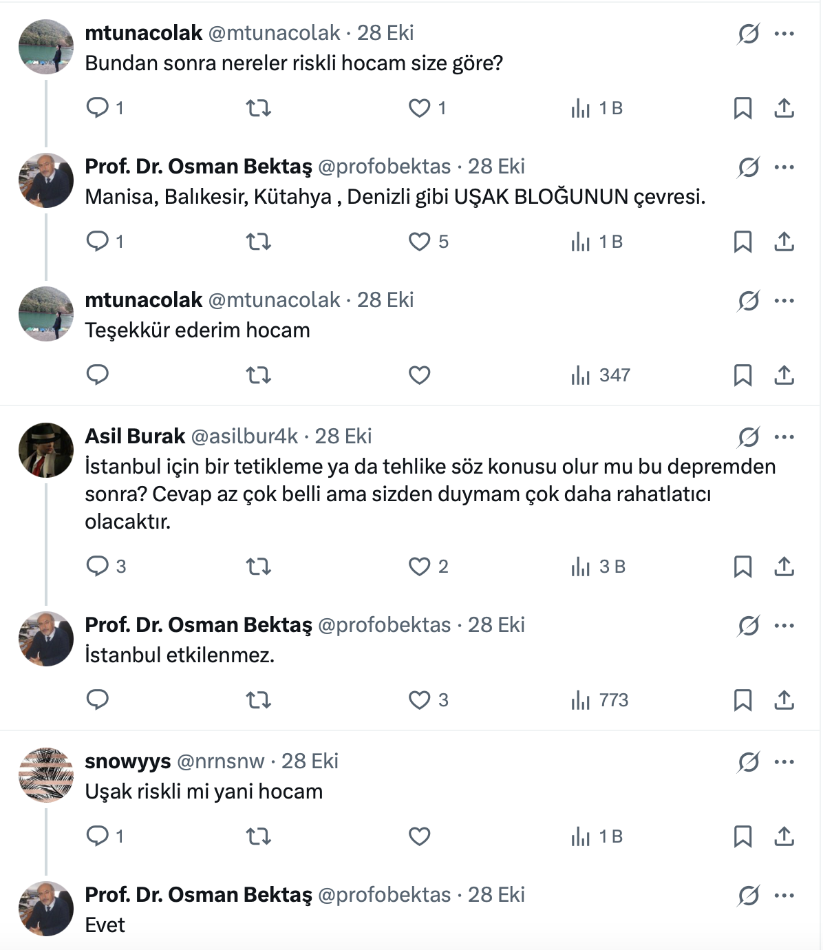 Deprem bilimci Prof. Dr. Osman Bektaş’ın paylaşımına şu yorumlar geldi:
