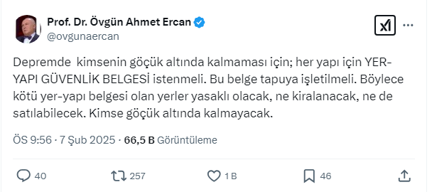 Bu sayede vatandaşların göcük altında kalmaktan kurtulacaklarını söyleyen Ercan sosyal medya hesabından konuyla ilgili açıklama yaptı. İşte o paylaşım ve gelen yorumlar...