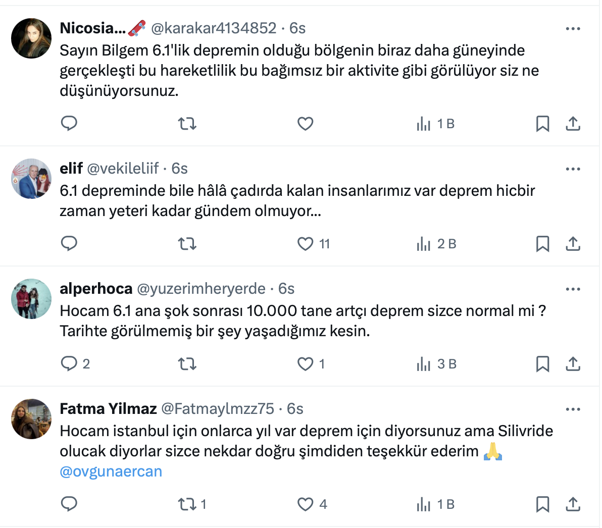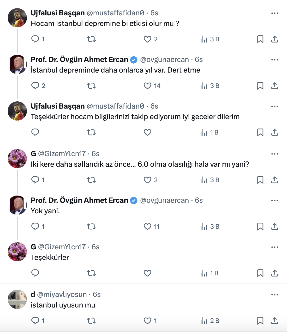 Yaptığı açıklamalarla dikkat çeken Prof. Dr. Övgün Ahmet Ercan resmi sosyal medya hesabı https://x.com/ovgunaercan üzerinden söz konusu deprem ile ilgili bir paylaşım yaptı. Prof. Dr. Övgün Ahmet Ercan açıklamasında “6,1’i aşan bir artçı deprem beklemiyorum” dedi.