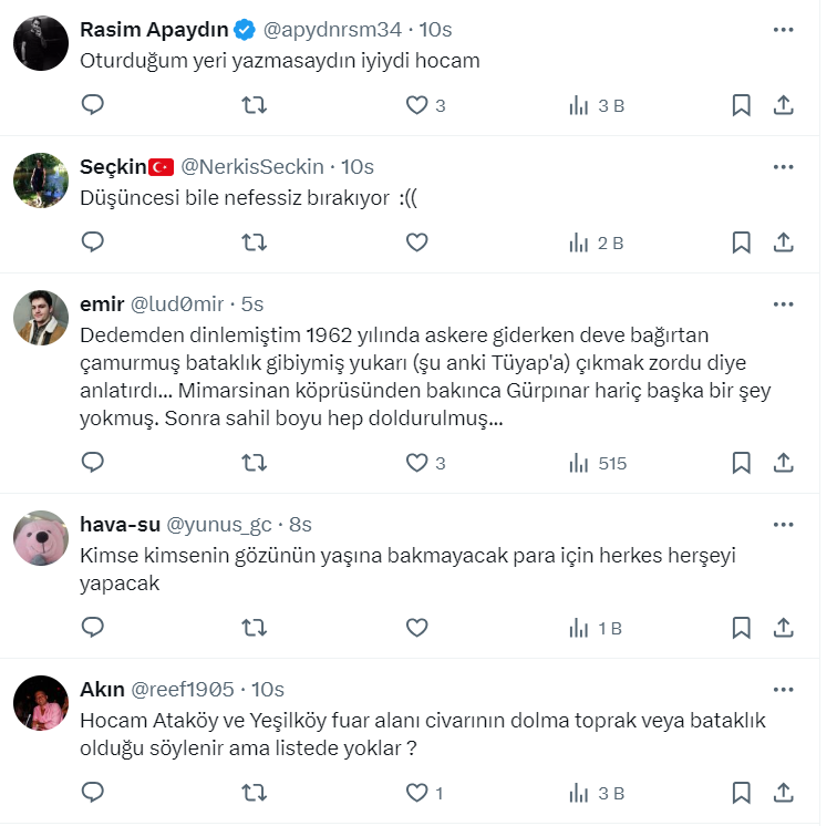 Prof. Dr. Ercan'ın paylaşımına göre bu mahalleler arasında Beylikdüzü (Yakuplu, Angurya Çiftliği, Fener, Dalyan, Pınarkent), Büyükçekmece (Deve Bağırtan, Tüyap altı), Esenyurt (Haramidere, Turan), ve Küçükçekmece (Kanarya, Cennet)