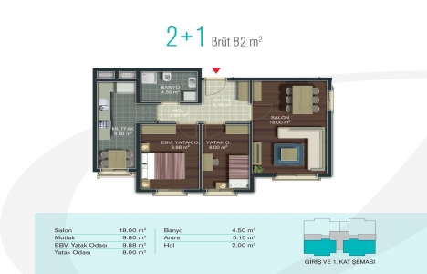 82 metrekare 2+1 daire tipi