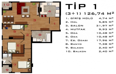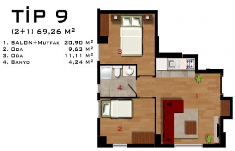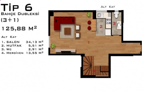 3+1 daire planı