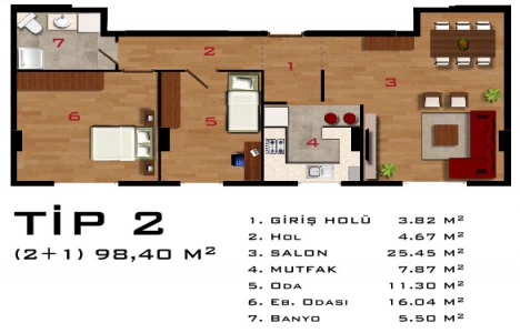 2+1 daire planı