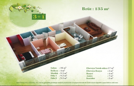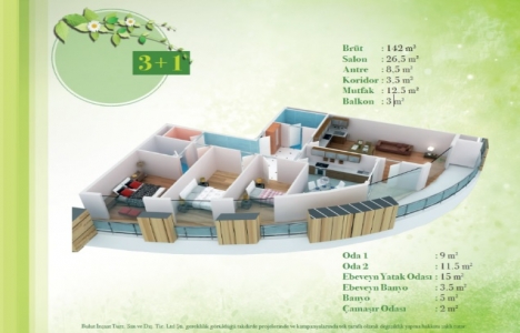 3+1 daire planı