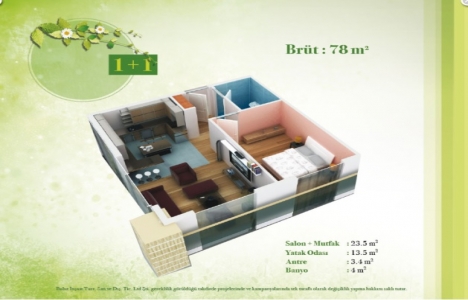 1+1 daire planı