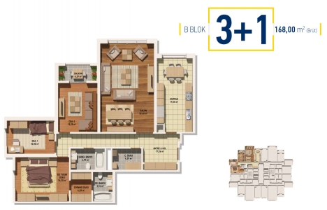 3+1 daire planı