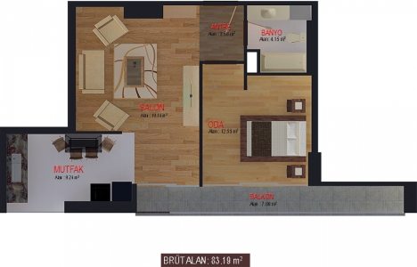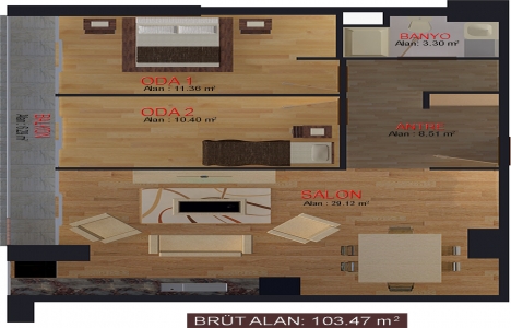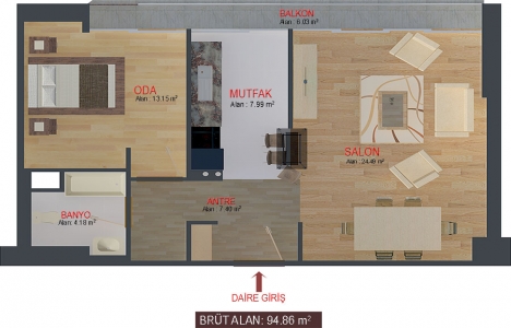 3+1 daire planı
