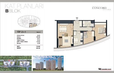 Concord İstanbul Evleri daire tipleri: