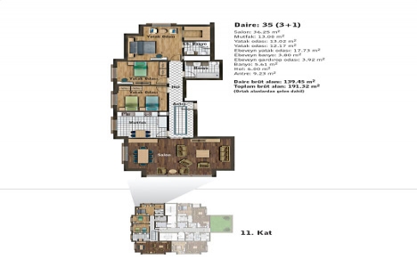 3+1 daire planı