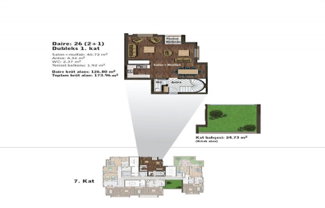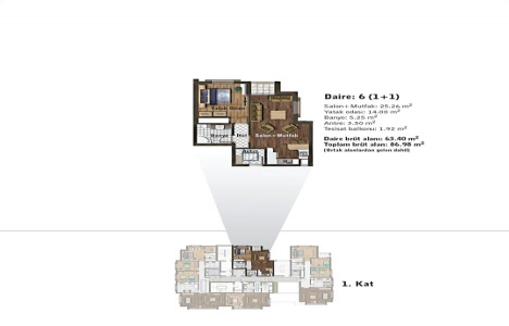 1+1 daire planı