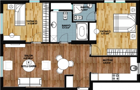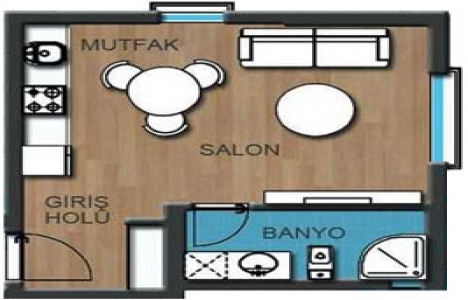 1+0 daire planı